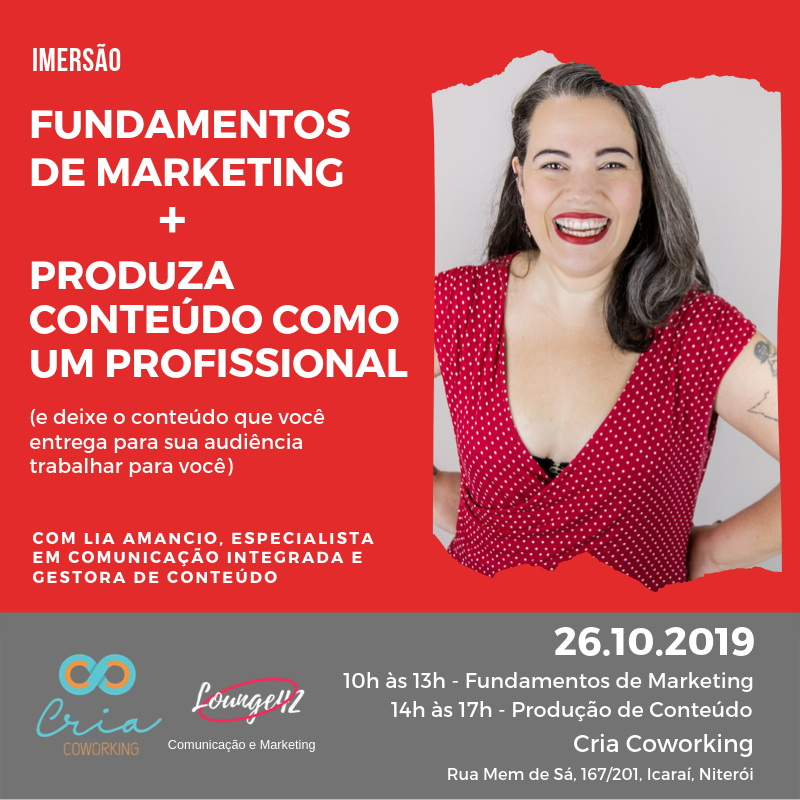 Será uma imersão de dia inteiro de Marketing e Produção de Conteúdo (com pausa para almoço), mas dá pra escolher a la carte – Fundamentos de Marketing pela manhã, intensivo em Produção de Conteúdo à tarde.